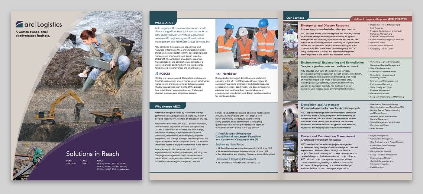 A brochure presenting the capabilities of ARC Logistics, LLC.